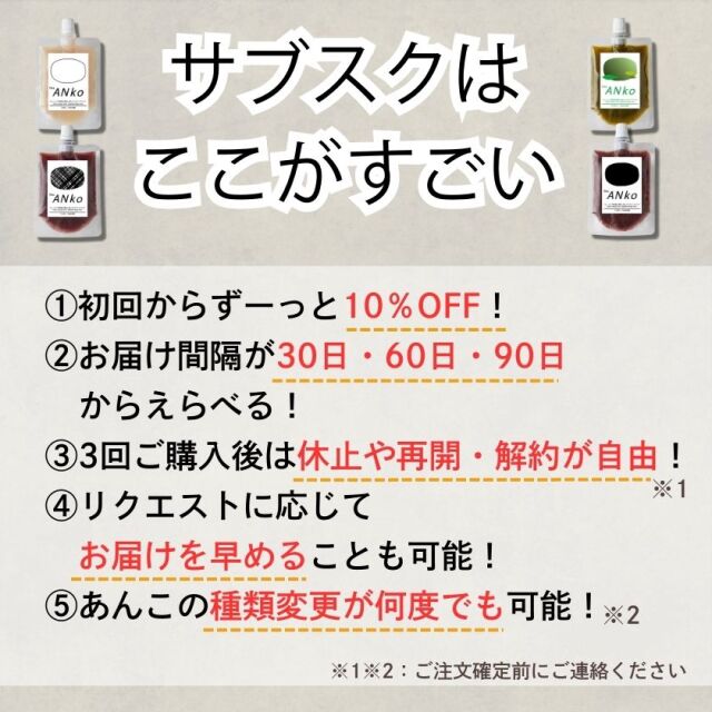 theANkoを「メール便」で定期的にお届けします。初回からずっと10%OFFで続けるほどお得に!